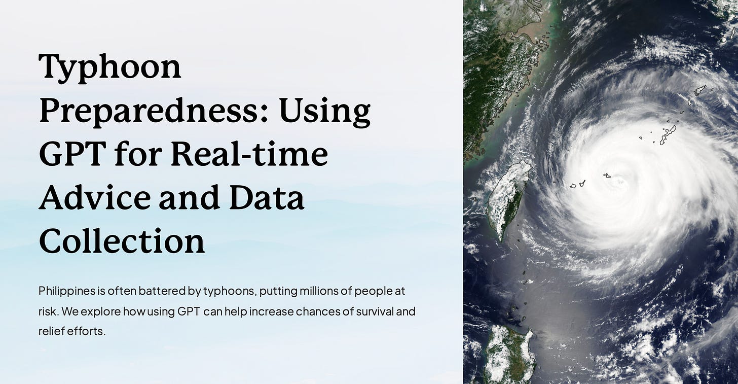 As part of a GPT Hackathon, me and my team used the GPT API to create a disaster relief platform in case of a typhoon or hurricane. We specifically targeted Philippines as it is often battered by typhoons, putting millions of people at risk. In combination with Twilio, a communcation tool development tech, we leveraged GPT in a phone call systems that warns potential victims of upcoming typhoons, and provides advice and relief coordination during and post disaster.